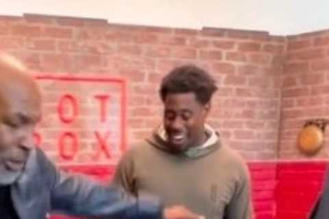 Watch boxing legend Mike Tyson attempt to pull off skateboard trick.. before toppling backwards..